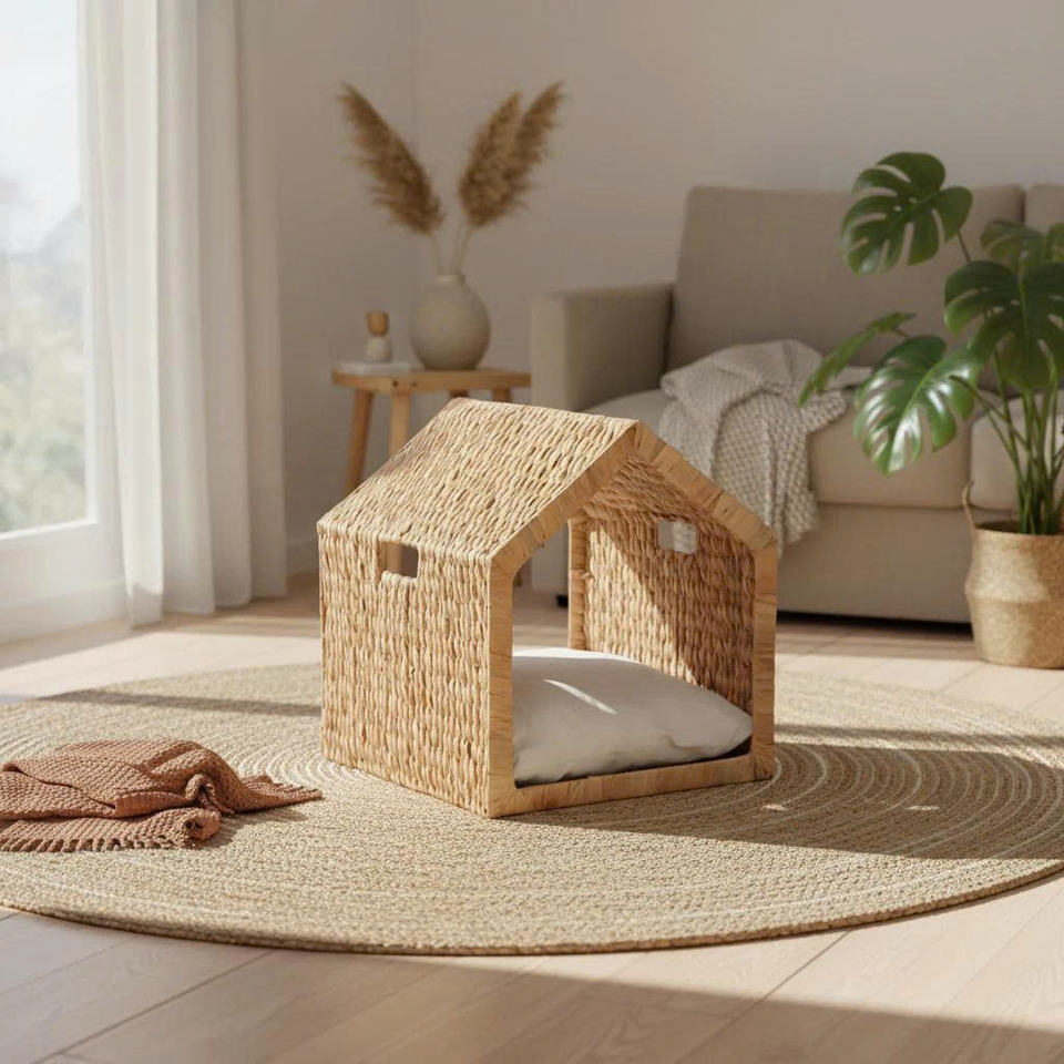 เตียงสัตว์เลี้ยงพับได้แบบพกพา ทำจากผักตบชวา ทอมือ สำหรับสุนัขและแมว - นุ่มสบาย เป็นมิตรกับสิ่งแวดล้อม ดีไซน์ทันสมัย ใช้ได้ทุกฤดู