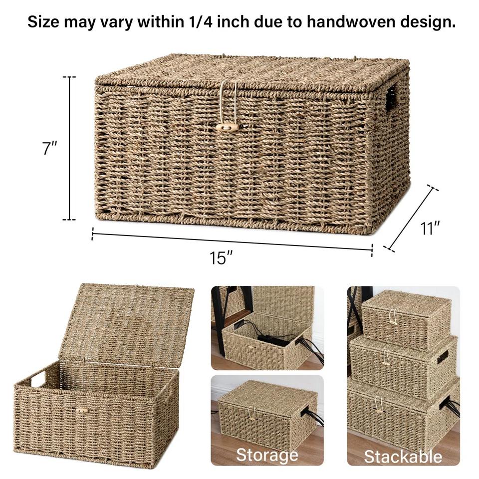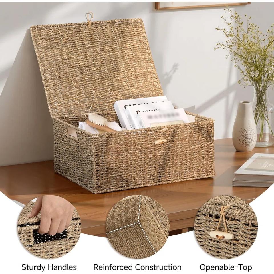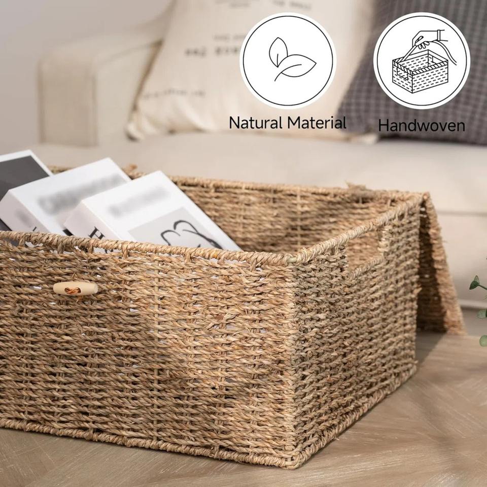 ตะกร้าเก็บของหวายสานมือพร้อมฝาเปิด-ปิด ตะกร้าเก็บของทำมือ ขายส่ง เป็นมิตรกับสิ่งแวดล้อม ผลิตในเวียดนาม