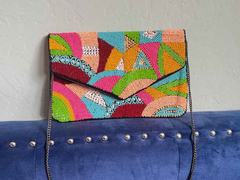 กระเป๋าคลัทช์ทำมือลูกปัดงานตอนเย็นกระเป๋าถือปักลายลูกปัดมีเอกลักษณ์ไม่ซ้ำใครด้วยแฟชั่นเรืองแสง
