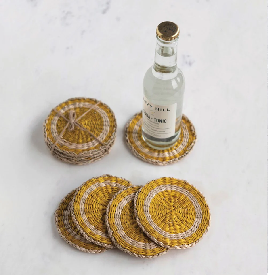 ชุดที่รองแก้วหญ้าทะเลทอมือพร้อมที่จับที่เข้าคู่กันเหมาะสำหรับการรับประทานอาหารแบบชนบทและการตกแต่งห้องครัวในราคาขายส่ง