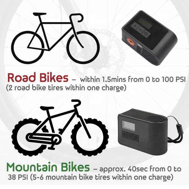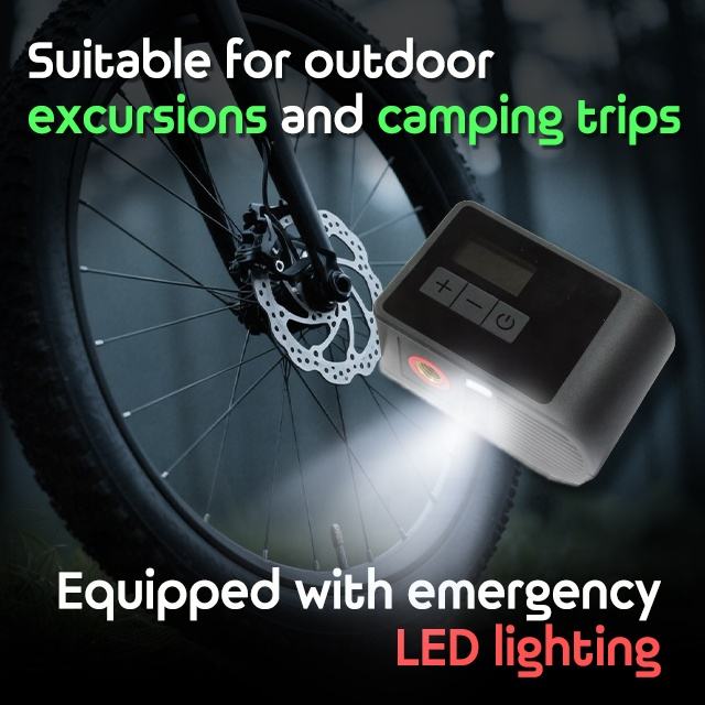 ที่สูบลมจักรยานไฟฟ้าขนาดเล็ก, พร้อมไฟ LED ฉุกเฉินในตัวคุณสมบัติ