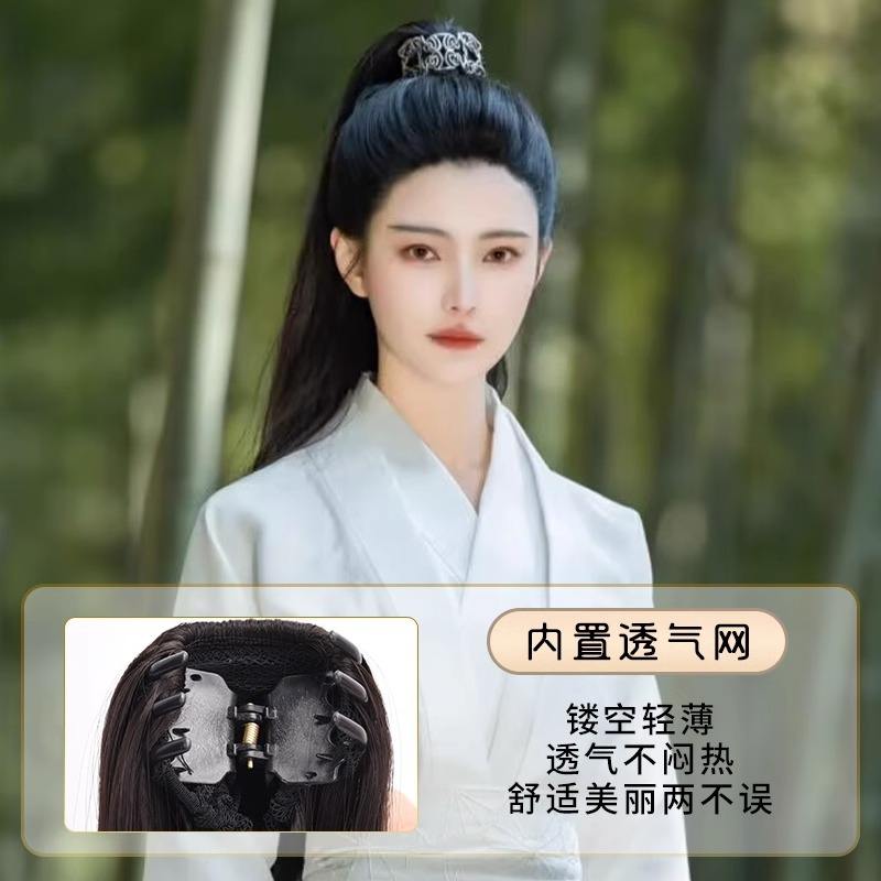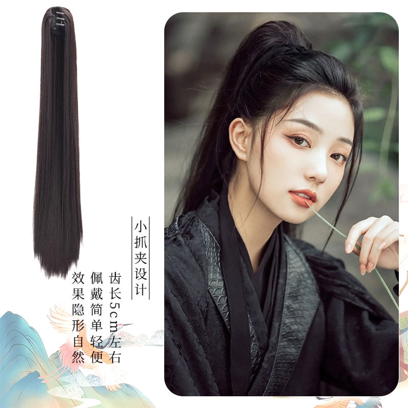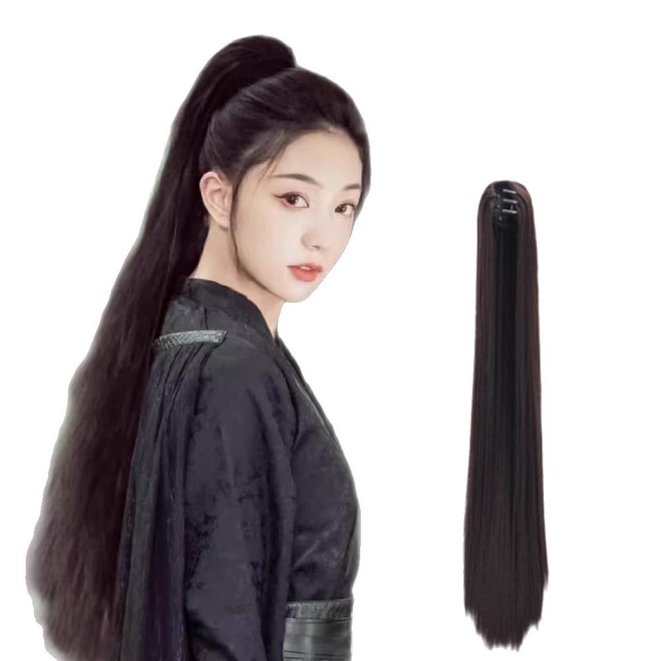วิกผมหางม้าฮันฟู ผมยาวตรงพร้อมคลิปหนีบ ทรงผมหางม้าสูงสไตล์โบราณ ใช้ได้ทั้งชายและหญิง ใช้งานง่าย
