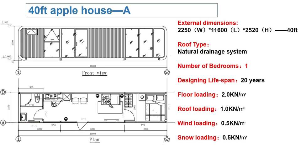 ชื่อผลิตภัณฑ์:บ้านกระท่อมแอ็ปเปิ้ลสำเร็จรูปแบบแยกส่วน