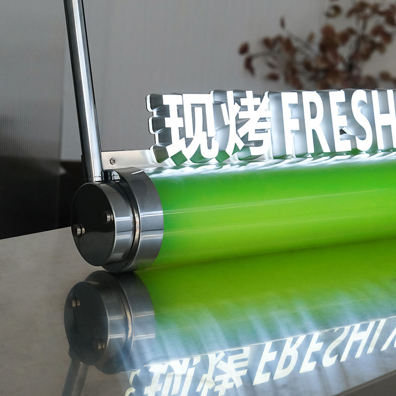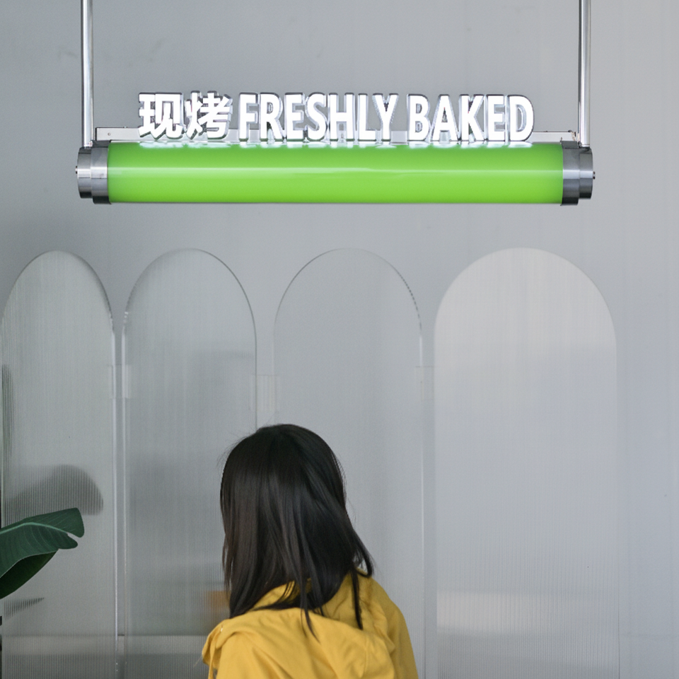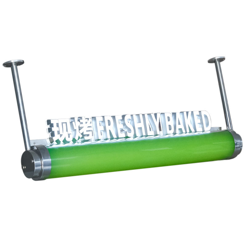 กล่องไฟทรงกระบอกแบบห้อยทำจากอะคริลิคขนาดเล็ก3D โลโก้ตัวอักษรเรืองแสงสร้างสรรค์บิลบอร์ดปรับแต่งได้