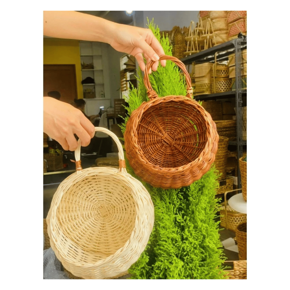 ตะกร้าแขวนผนังหวาย ตะกร้าหวายสานสำหรับใส่ต้นไม้ จัดเก็บ และตกแต่งบ้านสไตล์เรียบง่าย ผลิตในเวียดนาม