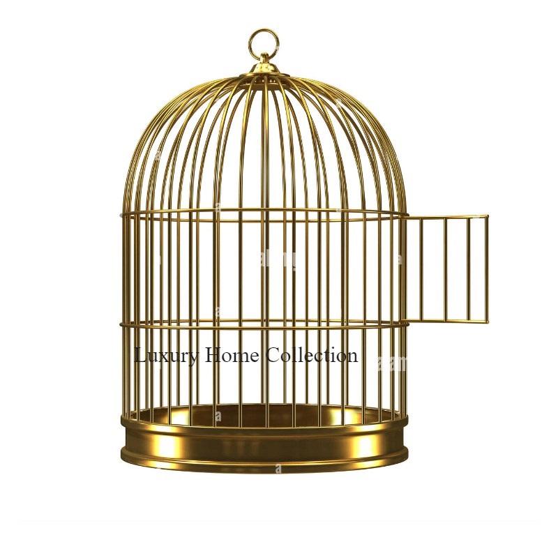 กรงนกแขวนพร้อมกรงและบ้านชุบทองเงางามอุปกรณ์สำหรับสัตว์เลี้ยงที่ออกแบบอย่างเรียบง่ายสำหรับสวน