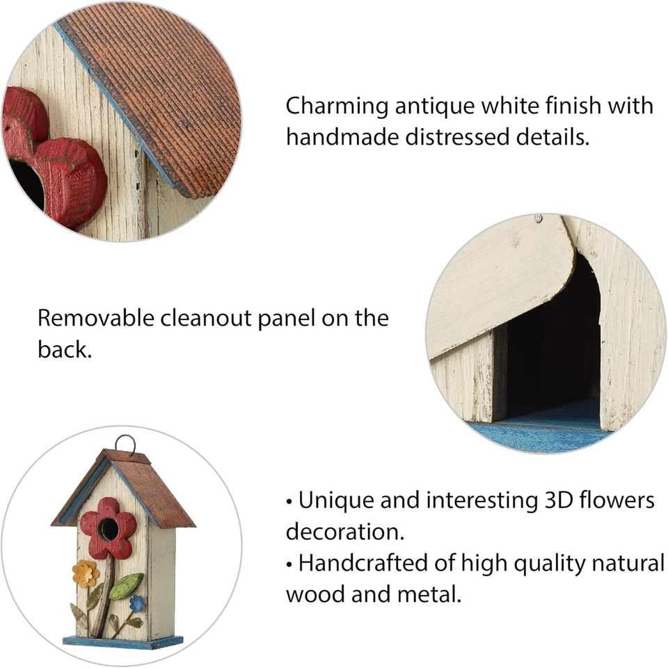 บ้านนกแขวนสำหรับตกแต่งสวนลานบ้าน บ้านนกไม้สไตล์วินเทจสีขาวลายดอกไม้