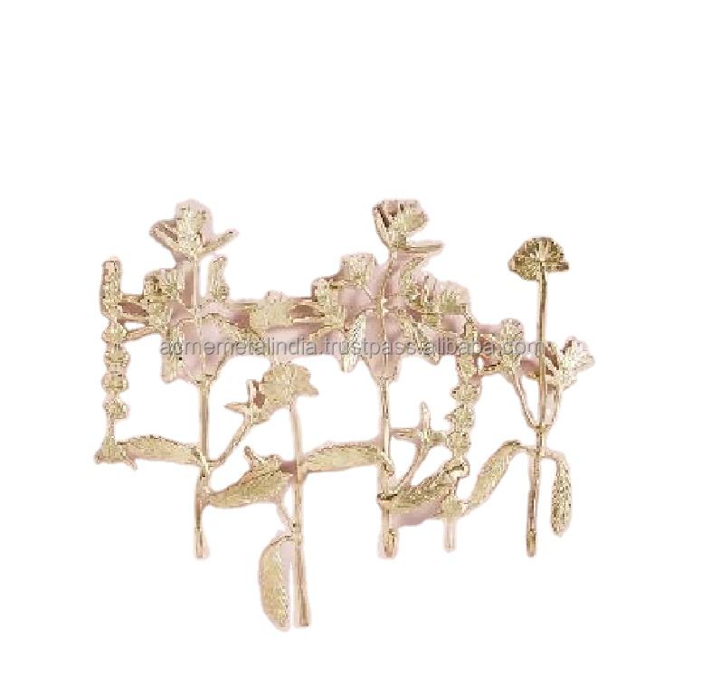 รูปแบบแขวนแบบตั้งได้ตามไลฟ์สไตล์ดีไซน์ใบไม้และดอกไม้โลหะชุบทองเครื่องประดับที่มีสไตล์สมบูรณ์แบบสำหรับจัดแสดงเครื่องประดับที่หรูหรา