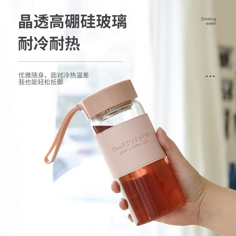 ขวดน้ำแก้วแฮงค์พาร์สัน 500 มล. พร้อมฝาปิดและหูจับสำหรับชงชาใช้ในสำนักงานเป็นของขวัญ