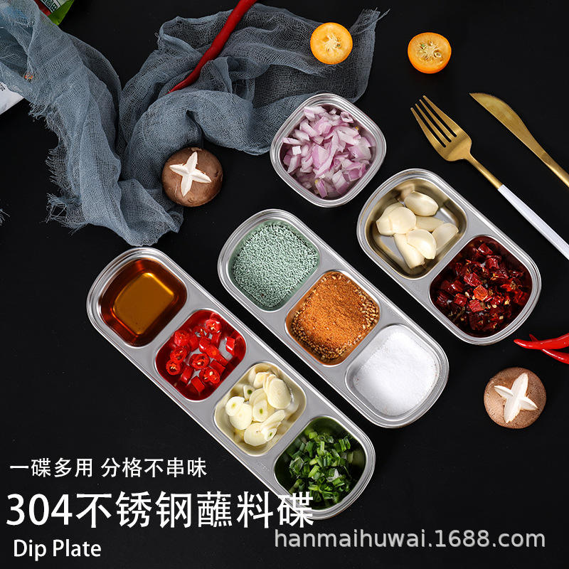 ถาดใส่เครื่องปรุงสแตนเลสฮันไมฮัววัย 304 พร้อมช่องใส่ซอสแบบพกพาสำหรับปรุงรสหม้อไฟ