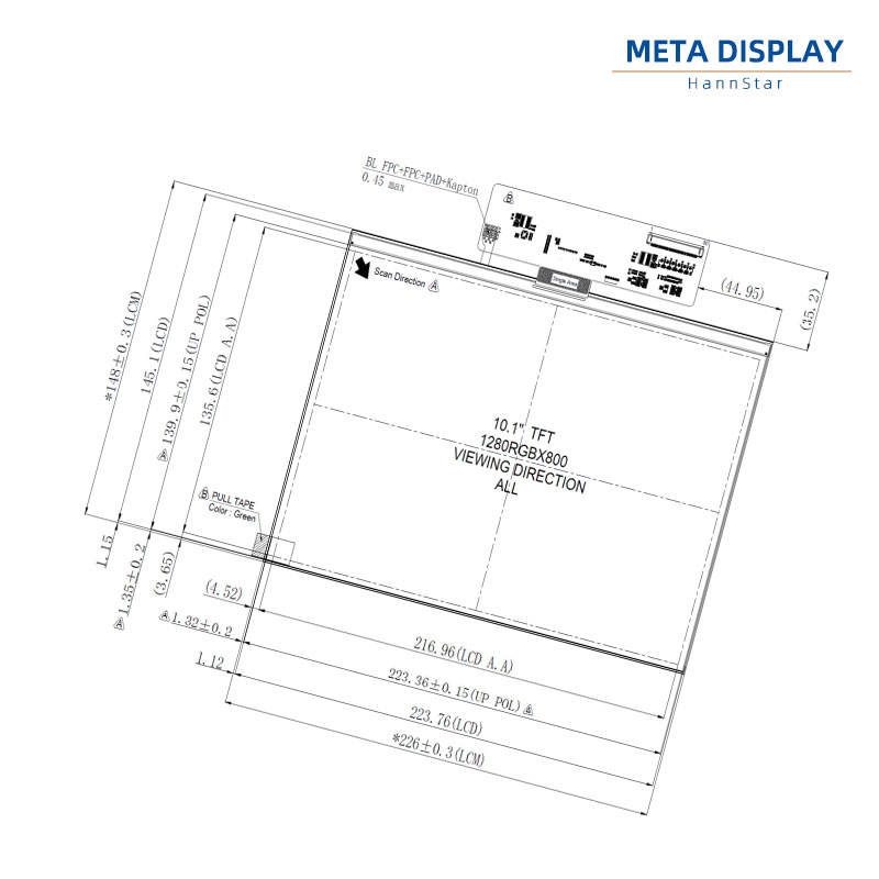 จอแสดงผล LCD HannStar HSD101GWW5-A01-P ขนาด 10.1 นิ้ว ความละเอียด 12800x800