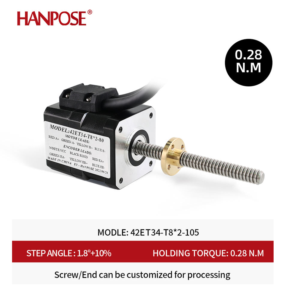 Hanpose Hybrid NEMA 17 Closed-loop Trapezoidal Stepper Motor 42ET34/40/48/60-T8*2/4/8+CL42 Motor for Equipment and Machines
