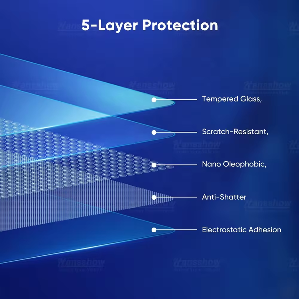 คุณสมบัติ:ป้องกันรอยขีดข่วนและป้องกันการระเบิดการรับรู้ภาพความละเอียดสูง, ความหนา0.3มม. อัปเกรดพร้อมการป้องกัน5ชั้น