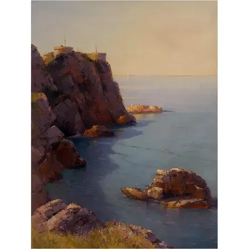 ภาพจิตรกรรมฝาผนังกระเบื้องทะเล Hansen สำหรับผนังห้องครัวผนังกันน้ำกระเด็นเช้าบนชายฝั่งภาพจิตรกรรมฝาผนังเซรามิกหินอ่อน