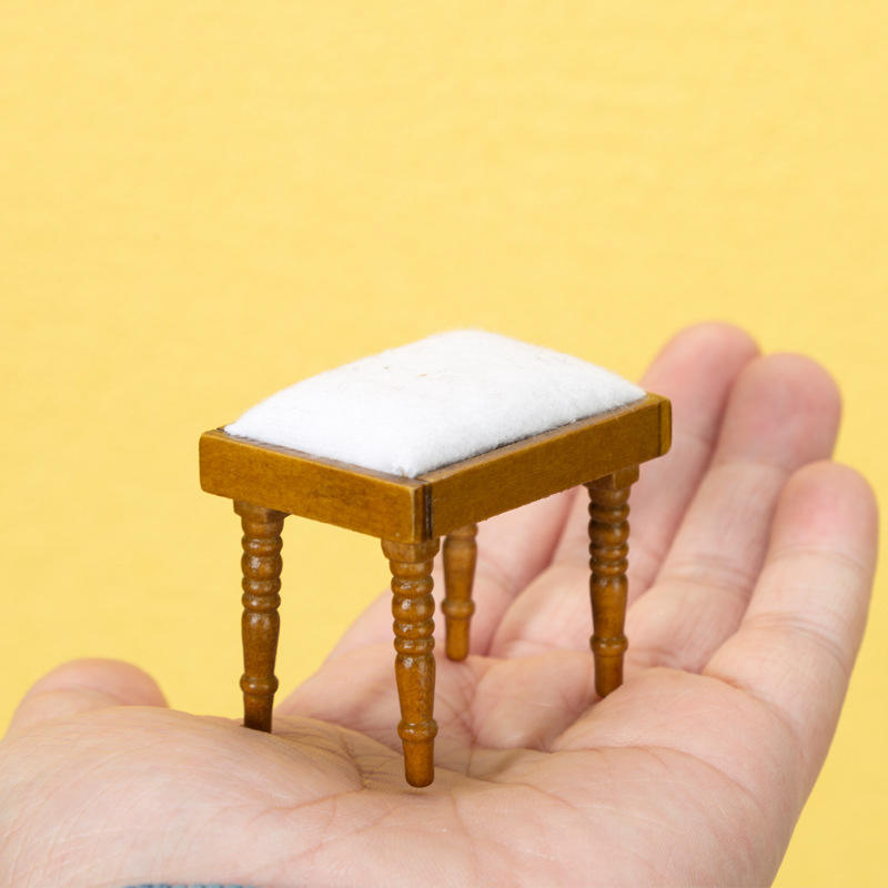Hao Chang 1:12 Mini Wood Makeup Stool for Doll House DIY Toy Princess Bedroom Low Stool 14+ Years Gift