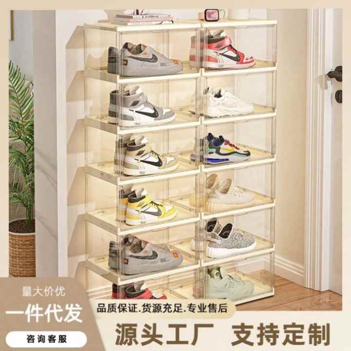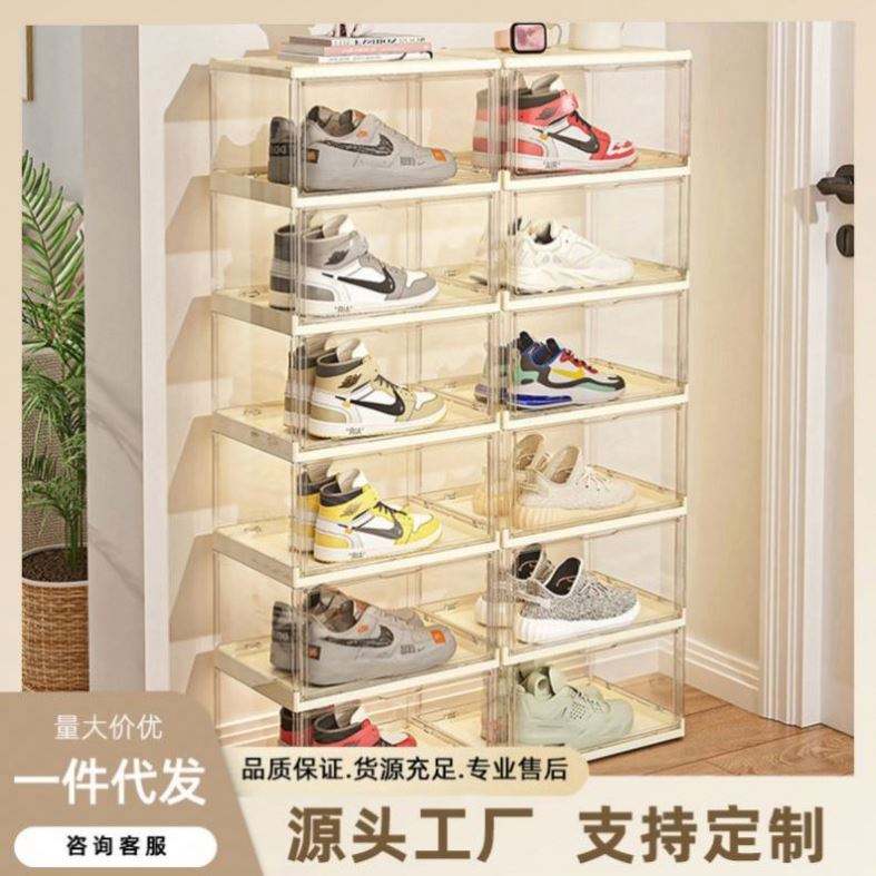 กล่องรองเท้าพลาสติกใสแบบพับได้ขนาดใหญ่ยี่ห้อ Haogle สำหรับขายส่ง แบบ OEM ซ้อนกันได้
