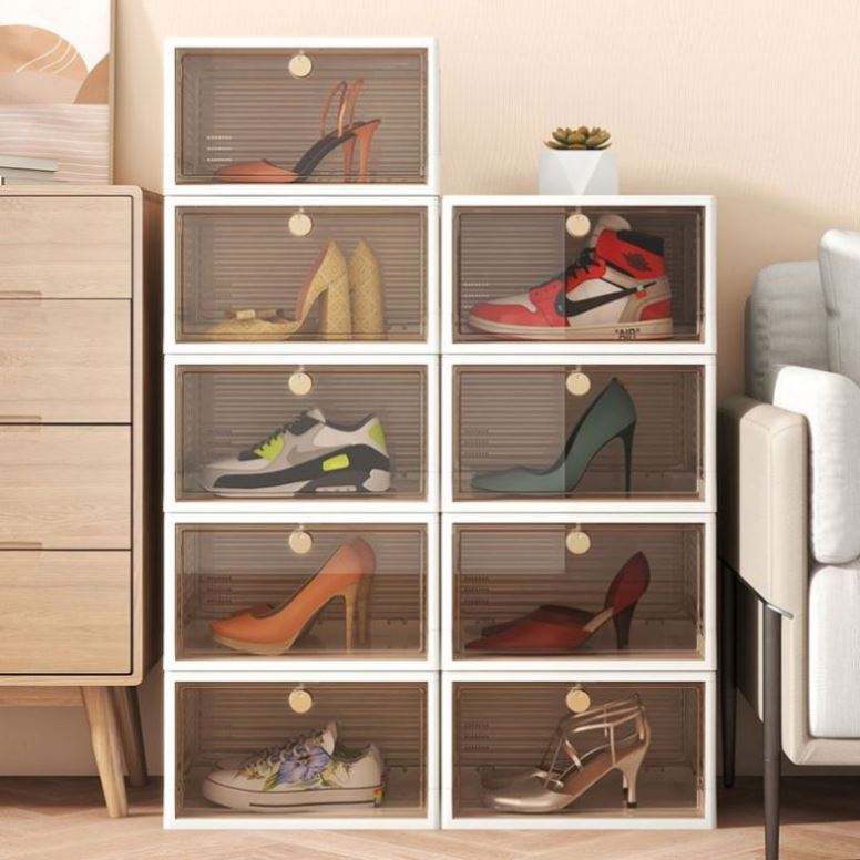 กล่องรองเท้าพลาสติกขายส่ง Haogle กล่องเก็บของแบบซ้อนได้ กล่องเก็บของแบบ DIY กล่องรองเท้าพลาสติกแบบพับได้