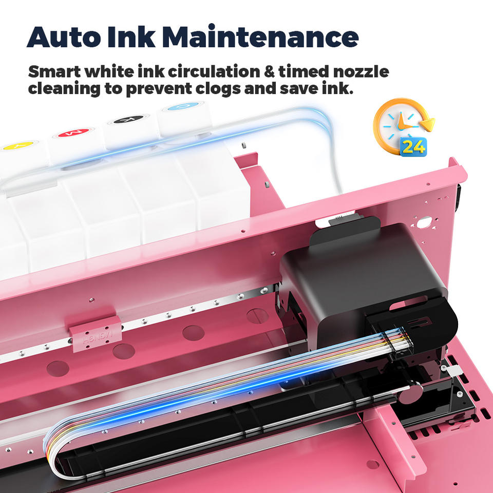 อุปกรณ์เครื่องพิมพ์ + เครื่องพิมพ์ DTF D8สีชมพู