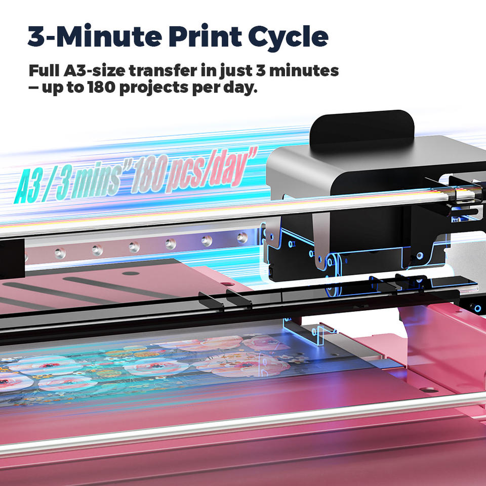 เครื่องพิมพ์ DTF D8สีชมพู + อุปกรณ์ + เตาอบ DTF