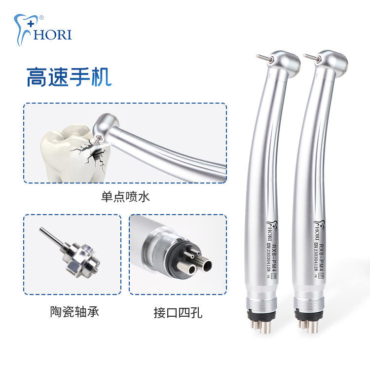 ชุดหัวกรอฟัน Haoyi ความเร็วสูง แบบ 4 รู พร้อมมอเตอร์ตรงและแบบงอ สีเงิน ระดับ Class III