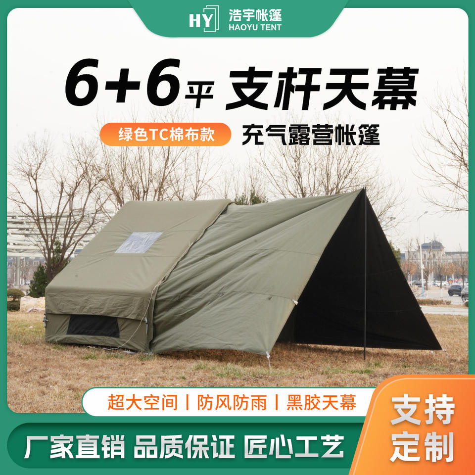 เต็นท์แคมป์ปิ้งเป่าลม Haoyu ผ้าฝ้าย TC 66.6 สำหรับ 4-6 คน กันน้ำ ระบายอากาศได้ดี ไม่ต้องประกอบ