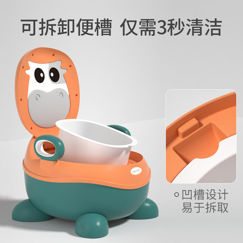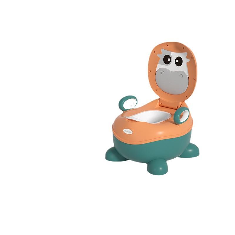 เก้าอี้ฝึกขับถ่ายสำหรับเด็กวัยหัดเดิน 1-2 ปี ทำจากพลาสติก พร้อมฝาปิดและที่จับ ดีไซน์สีส้มเขียว