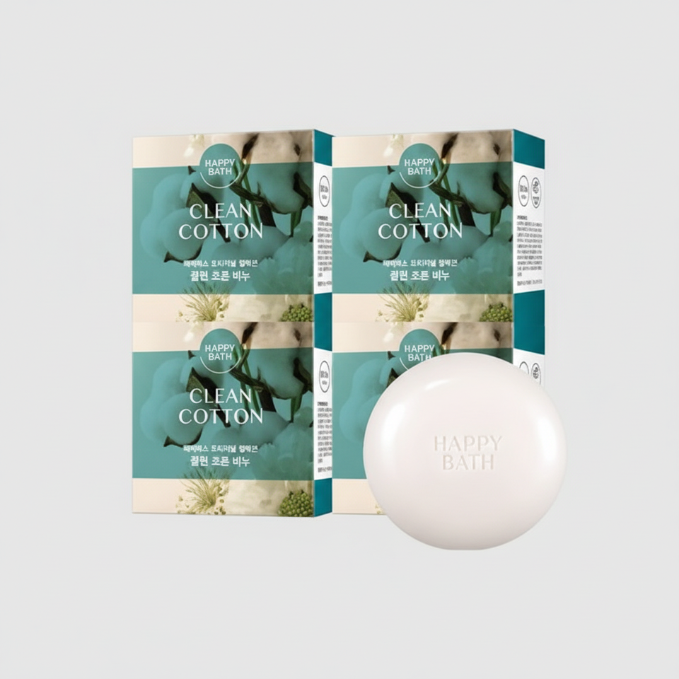 สบู่ก้อนแฮปปี้บาธ ออริจินัล คอลเลคชั่น 90 กรัม กลิ่นคลีนคอตตอน 1 ก้อน ราคาพิเศษ