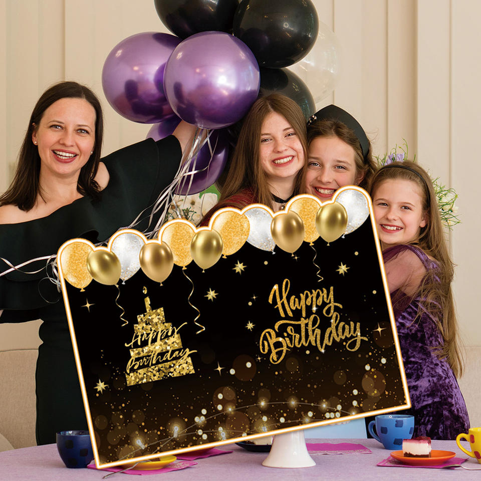 ของตกแต่งงานปาร์ตี้การ์ดกระดาษเรียบง่ายสีดำสุขสันต์วันเกิด