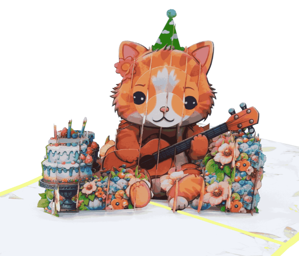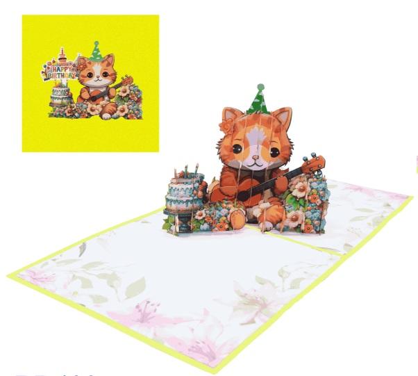 Name:Happy Birthday Cat Guitar 3D Pop Up Card
