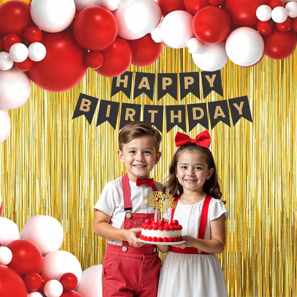 ชุดตกแต่งวันเกิดสีแดง | ลูกโป่งสีแดงและสีขาว 45 ชิ้น และม่านฟอยล์สีทอง | ของตกแต่งงานวันเกิดสำหรับเด็กและผู้ใหญ่