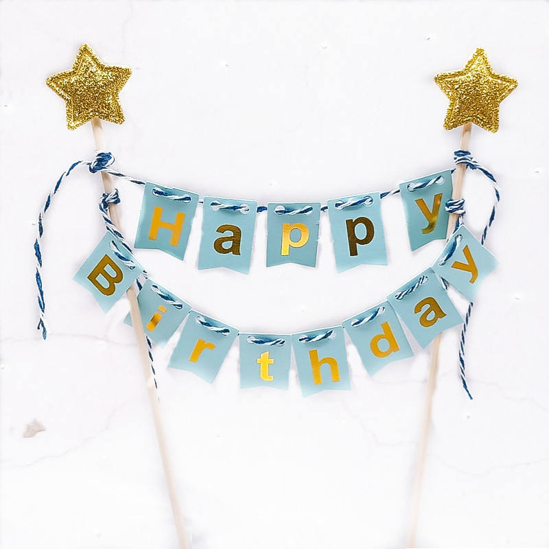 ป้ายปักเค้กสุขสันต์วันเกิดธงแบบดึงสำหรับตกแต่งขนมอบ