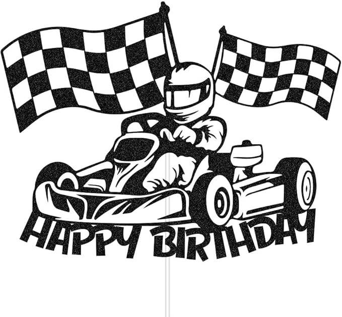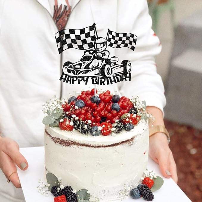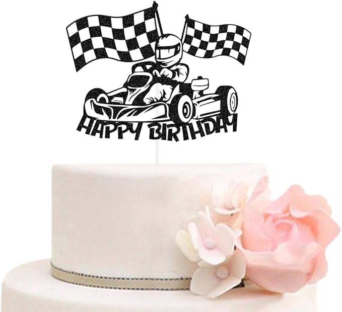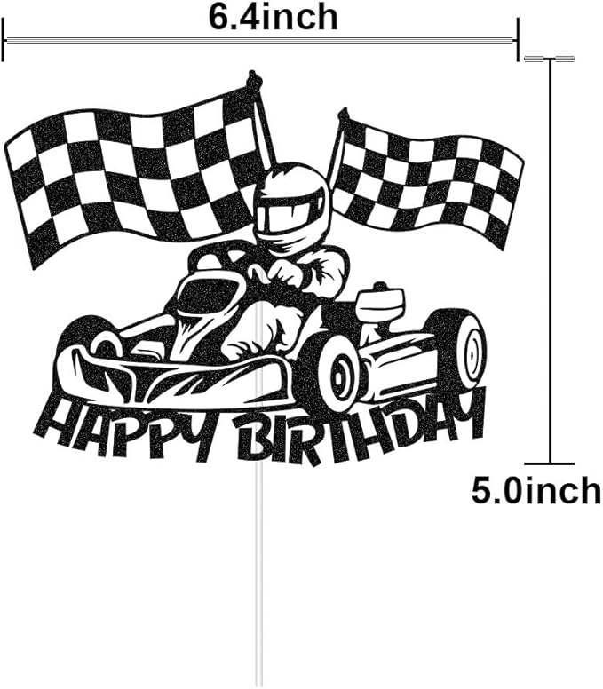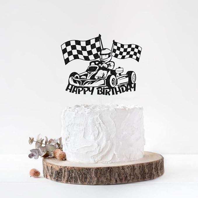 สุขสันต์วันเกิด ที่ประดับเค้กรูปรถแข่ง ธงลายตาราง ของตกแต่งเค้กธีมแข่งรถ สำหรับเด็กชาย เด็กหญิง อุปกรณ์จัดปาร์ตี้