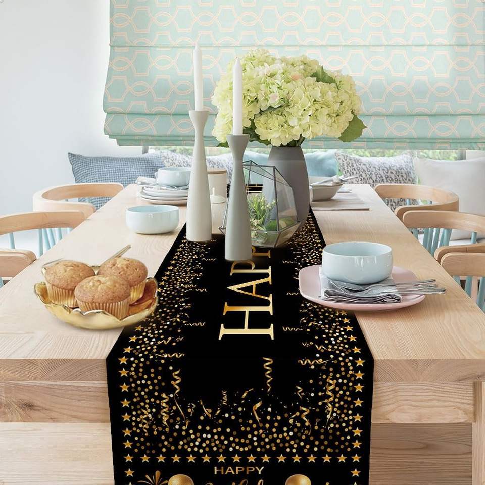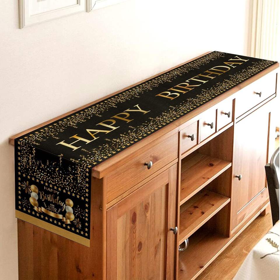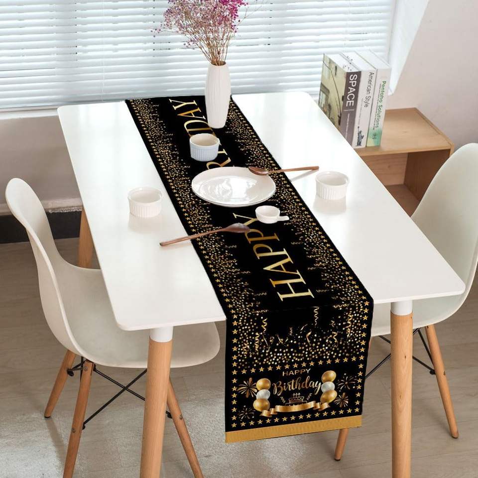 ธงประดับโต๊ะสุขสันต์วันเกิด13X72inch โมเดิร์นสีดำทองอุปกรณ์ตกแต่งสำหรับงานเลี้ยงวันเกิด