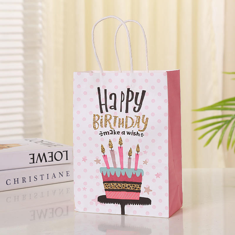 Happy Bith วันของขวัญกระเป๋าจับเด็กรักษาขนมถุงกุ๊ดดี้ Tote กระเป๋ามือโปรดปรานกระดาษคราฟท์พรรค Gravure พิมพ์ยอมรับ