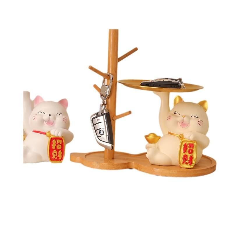 ของตกแต่งบ้านรูปแมวแฮปปี้ พร้อมที่เก็บกุญแจ ทำจากเรซิ่นอีพ็อกซี่ งานศิลปะสำหรับตกแต่งห้องนั่งเล่น ของตกแต่งบ้าน ของขวัญขึ้นบ้านใหม่
