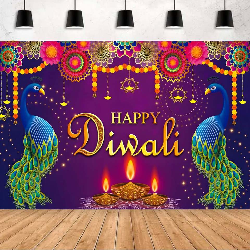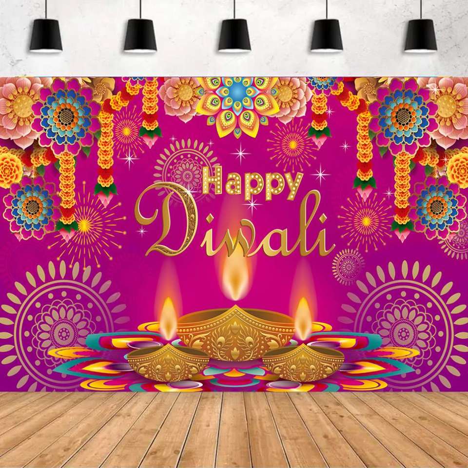 แบนเนอร์ฉากหลังดิวาลีแสนสุข เทศกาลแสงสว่างอินเดีย ฉากหลังธีมงานเฉลิมฉลองดิวาลี ของตกแต่งงานปาร์ตี้