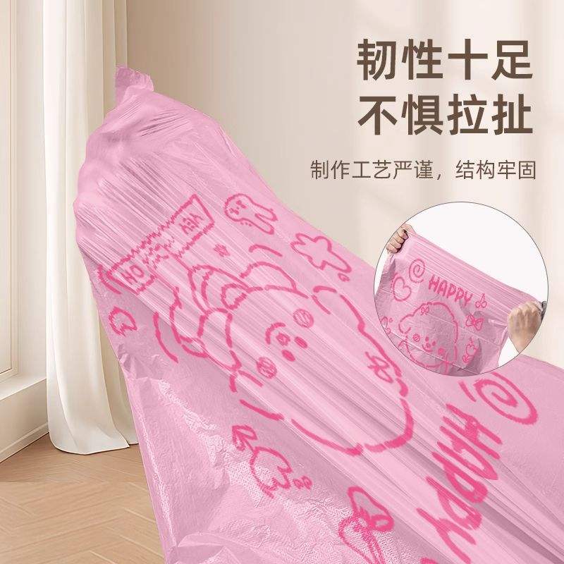ถุงขยะแบบมีเชือกผูกพิมพ์ลายการ์ตูนแฮปปี้ด็อกไอซ์เบอร์รี่สีชมพูหนาพิเศษสำหรับใช้ในบ้านหอพักห้องครัวกระเป๋าถือขนาดใหญ่