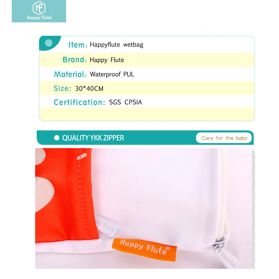 Happy FLUTE กระเป๋าแฟชั่น, กระเป๋าเปียก30*40ซม. 2ซิปกระเป๋าผ้าอ้อมใช้ซ้ำได้