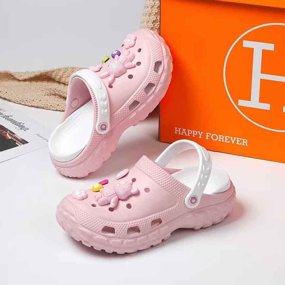 รองเท้าแตะผู้หญิงสีขาว EVA พร้อมจี้รูปหมี ส้นสูง 3 ซม. รองเท้าชายหาดฤดูร้อน ไซส์ 35-40 ยี่ห้อ Happy Forever