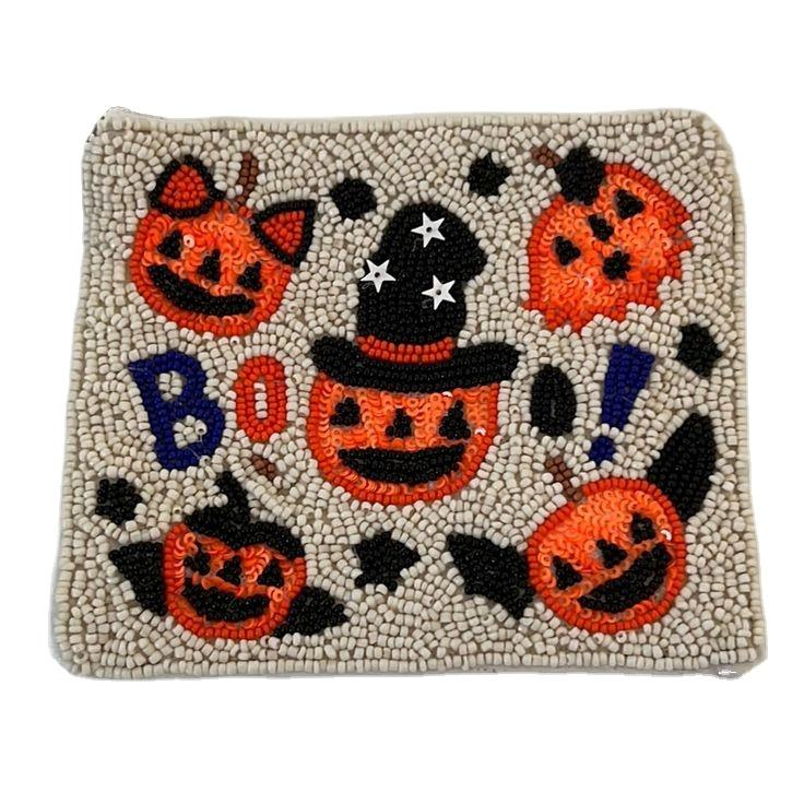 สุขสันต์วันฮาโลวีนกระเป๋าลูกปัดฟักทอง CG Lux กระเป๋าใส่เหรียญฟักทองฮาโลวีนสีดำและสีขาว