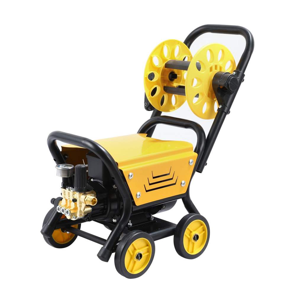 แฮปปี้เครื่องล้างรถยนต์ไฟฟ้าแรงดันสูงสีเหลืองขนาดเล็กใช้ในครัวเรือนแปรงล้างรถเชิงพาณิชย์สำหรับร้านล้างรถ