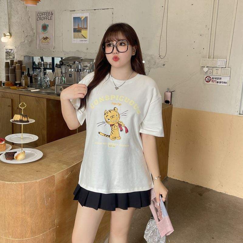 เสื้อยืดผู้หญิงไซส์ใหญ่ Happy Hut ทรงหลวม แขนสั้น คอกลม ผ้าคอตตอนเนื้อนุ่ม พิมพ์ลายการ์ตูน สไตล์ฤดูใบไม้ร่วง เหมาะสำหรับใส่เป็นเสื้อตัวใน