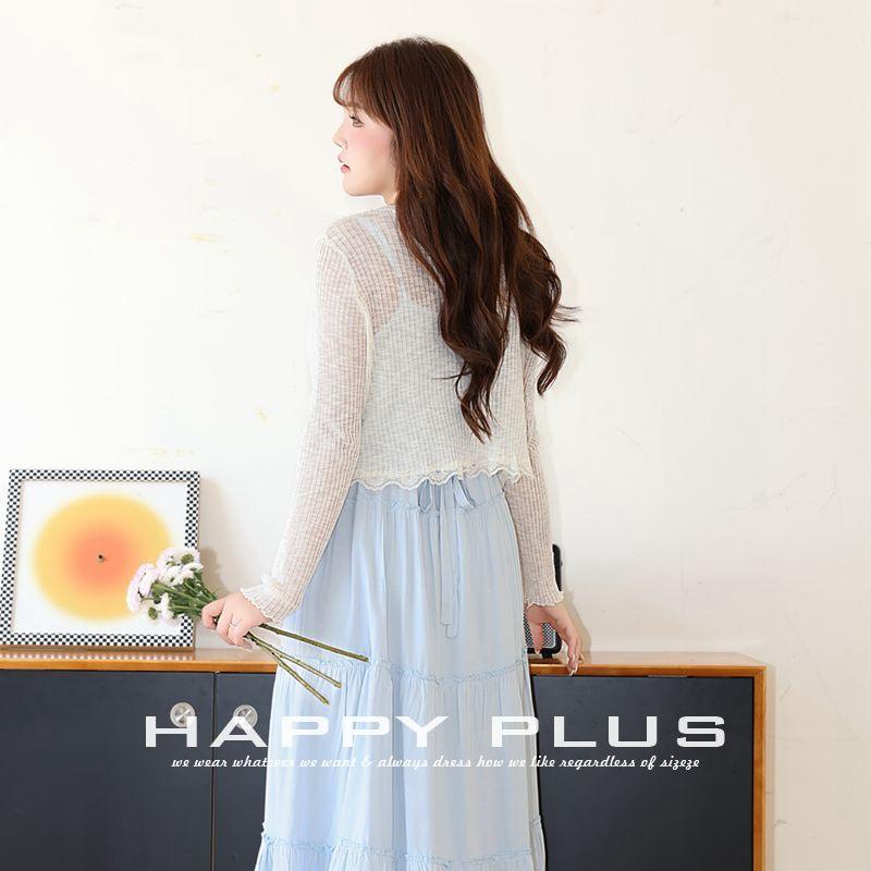 แฮปปี้ พล เลซ ทริมเสื้อคาร์ดิแกนถักสีขาวแอปริคอทผู้หญิงไซส์พลัส วี นีค รัฟเฟิลส์ฤดูใบไม้ผลิฤดูร้อนผ้าคลุมไหล่น้ำหนักเบา N8935