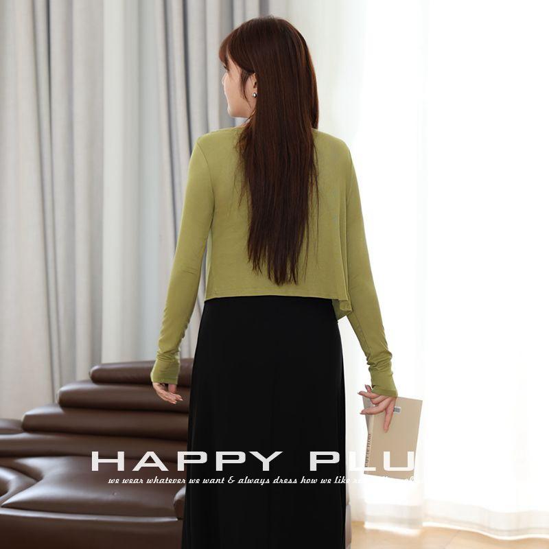 Happy Plu Women's Olive Green Knit Cardigan Asymmetric Hem Long Sleeve Plus Size Summer Outerwear N8945