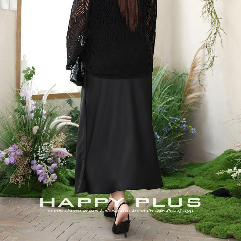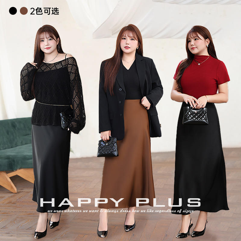 กระโปรงมิดิผ้าซาตินทรงเอไลน์เอวสูงแบบไบแอสคัท รุ่นแฮปปี้พลัส สำหรับผู้หญิงไซส์พลัส สีพื้น รุ่น N9014