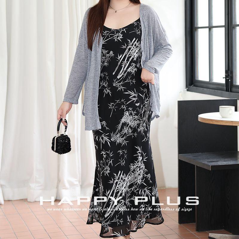 แฮปปี้ พลัส ชุดเดรสผ้าชีฟองคอวีทรงเข้ารูปเอวทรงหางปลา N8978 ชุดเดรสผู้หญิงสไตล์จีนหรูหราขนาดพลัสไซส์