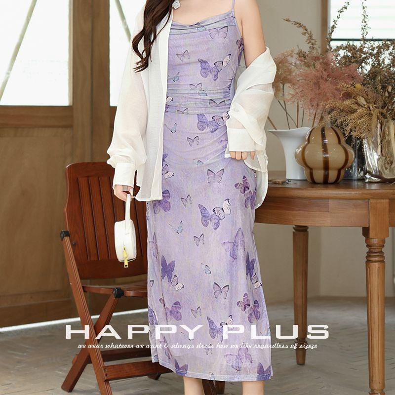 เดรสผ้าตาข่ายพิมพ์ลายผีเสื้อทรงพลีทเอวเข้ารูปพร้อมสายรัด รุ่น N8968 ไซส์พลัส ชุดเดรสผู้หญิงสวยสง่า