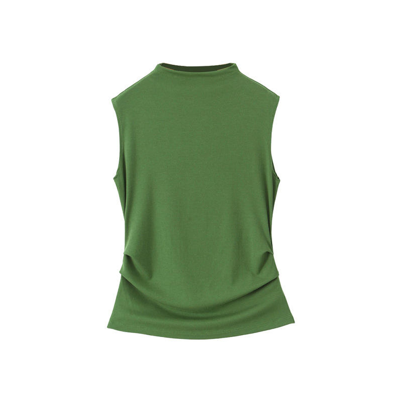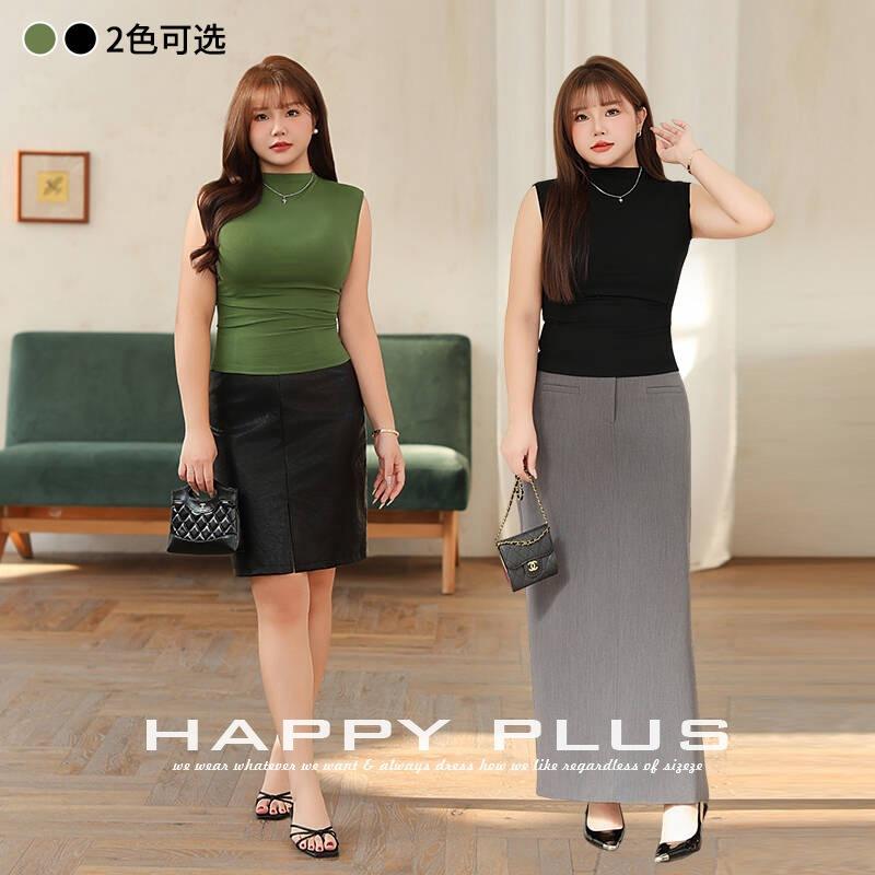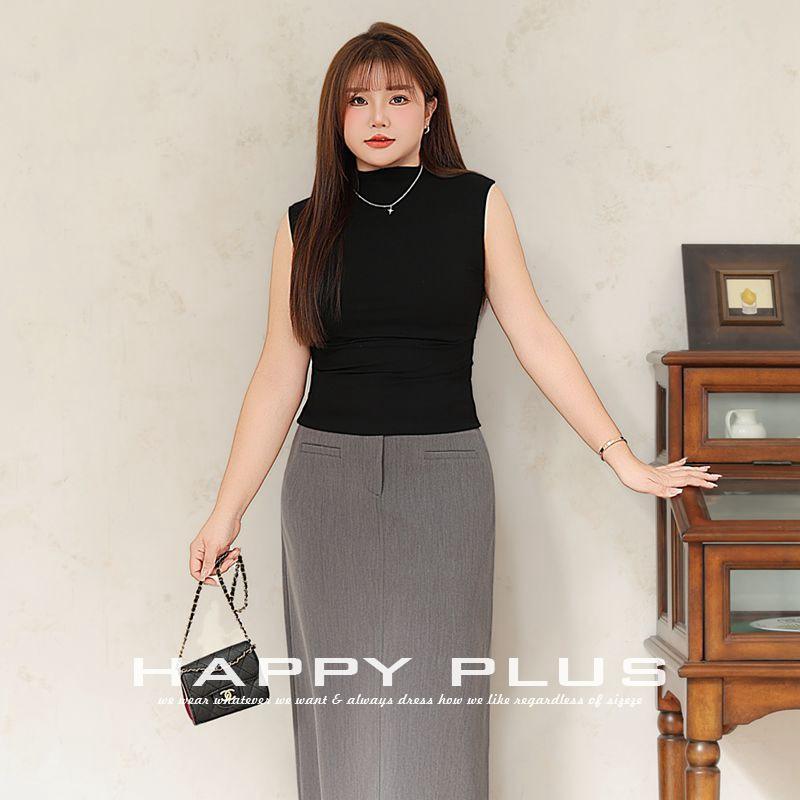 Happy Plus Elegant High Neck Sleeveless Top Plus Size Fitted Waist Knitted Solid Color Women's Tank Top