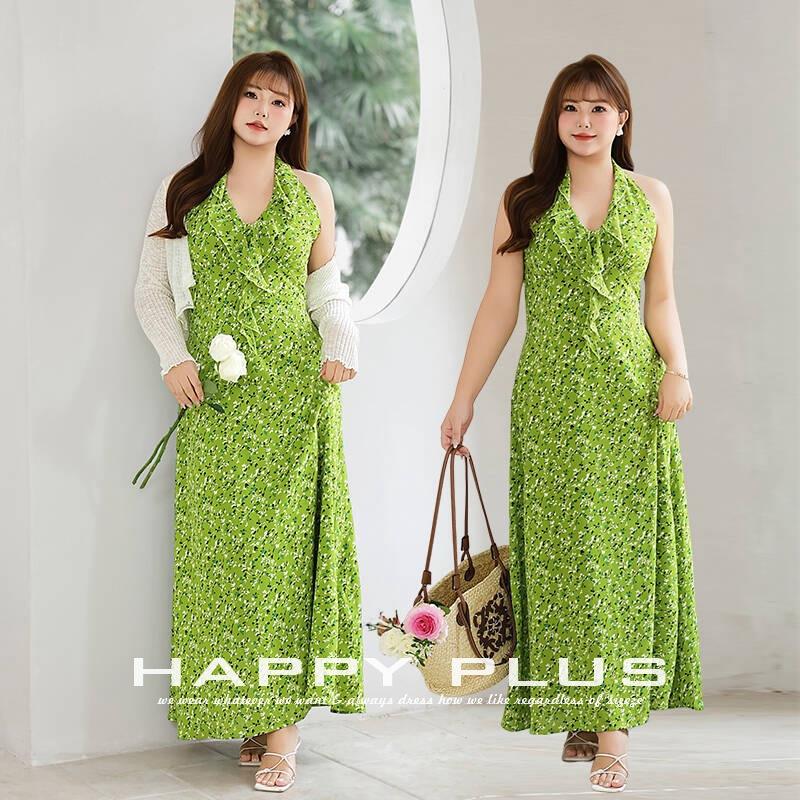 เดรสชีฟองทรงเอพิมพ์ลายดอกไม้แบบผูกคอ แฮปปี้พลัส ไซส์พลัสสำหรับผู้หญิง เดรสยาวทรงแม็กซี่ เอวธรรมชาติ