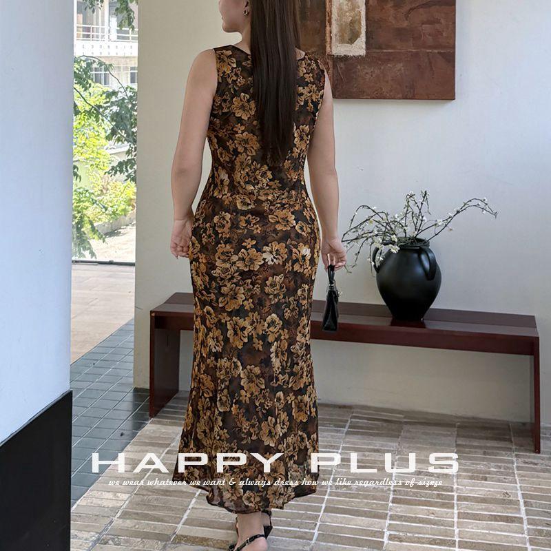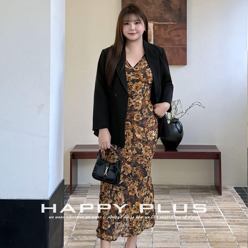 แฮปปี้ พลัสชุดเดรสคอวีพิมพ์ลายดอกไม้ขนาดพลัสไซส์ผู้หญิงฤดูใบไม้ร่วงปี 2025 สินค้ามาใหม่ N8803